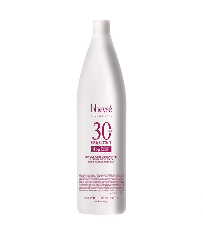 Bheysé Oxy Creme 9% 1000ml is een waterstofperoxide voor alle permanente haarkleuringen. Deze Bheysé ontwikkelaar heeft een percentage van 9% of ook genoemd 30 VOL. en is specifiek gemaakt om optimaal te werken met alle Bheysé haarverf. Deze oxidant is verkrijgbaar in verschillende sterktes en formaten. De oxidant wordt aan de haarkleuring toegevoegd voor een extra intense en glanzende kleur. Deze oxydant is licht geparfumeerd met kokosolie en bijenwas. Bheysé Oxydant Creme haalt de eigen haarkleur uit het haar, waardoor de nieuwe kleur een betere onderlaag heeft en beter pakt.