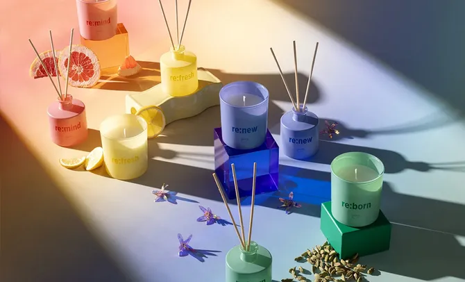 De bloemige re:new geur is een levendige mix van geredde jasmijn, ondeugende tuberoos en sprankelende ylang-ylang brengt een bloemenfeestje in je kamer. Voeg daar een explosie van fruitige, groene geuren aan toe en ten slotte een warme, muskusachtige basis van sandelhout voor een gezellige sfeer. Voor de re:new geur hebben onverkochte bloemen een tweede kans gekregen voor een renewed geurbeleving!