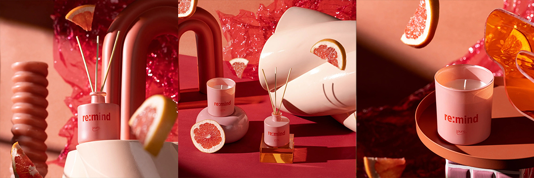 De fruitige re:mind geur is als een verse fruitcocktail die je zintuigen prikkelt! De topnoot opent met een frisse mix van abrikoos, mango, rabarber en grapefruit, die je meteen doet denken aan een bruisend zomerfeest. In het hart ontvouwt zich een fruitig-bloemige compositie van neroli en waternoten, die voor een verfrissende lichtheid zorgen. Om het geheel af te maken, wordt je omhuld door een warme basis van vanille, muskus en kokosnoot, wat de geur een zachte, uitnodigende diepte geeft. Voor deze fruitige en sappige geur zijn grapefruits uit de sapproductie hergebruikt.