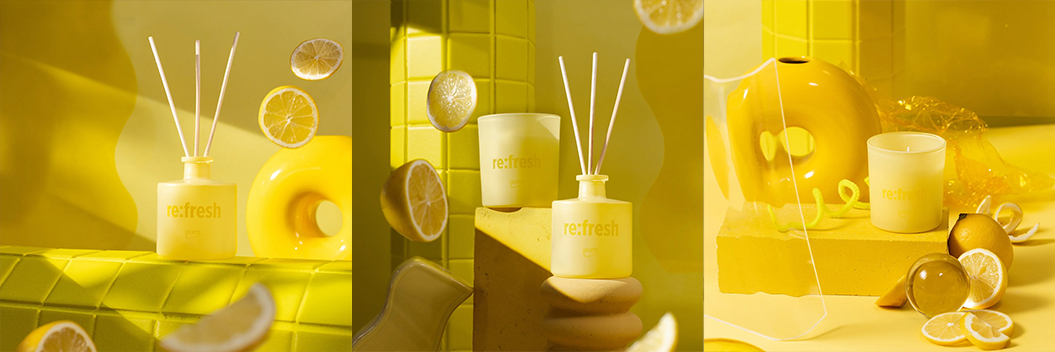 re:fresh is een sprankelende geur met citrusstart van geredde citroen en mandarijn, gevolgd door een bloemig-fruitig feestje van lelietjes-van-dalen en sappig fruit. En om het helemaal af te maken: een warme, aardse omhelzing van cederhout, muskus en amber. WE ARE: re:fresh is ideaal voor iedereen die van frisse geuren houdt. Voor deze geur zijn citroenschillen gebruikt voor een ultiem frisse kick!