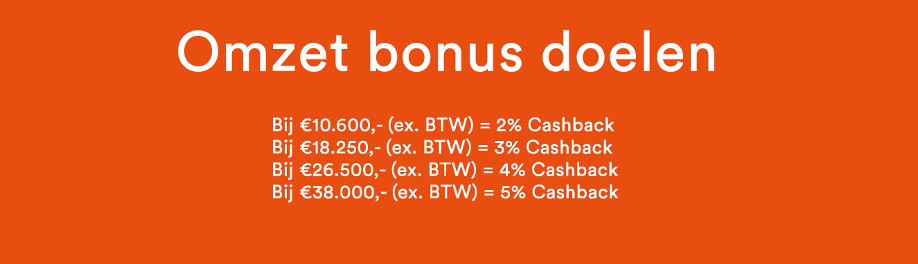 Bij €10.600,- (ex. BTW) = 2% cashback