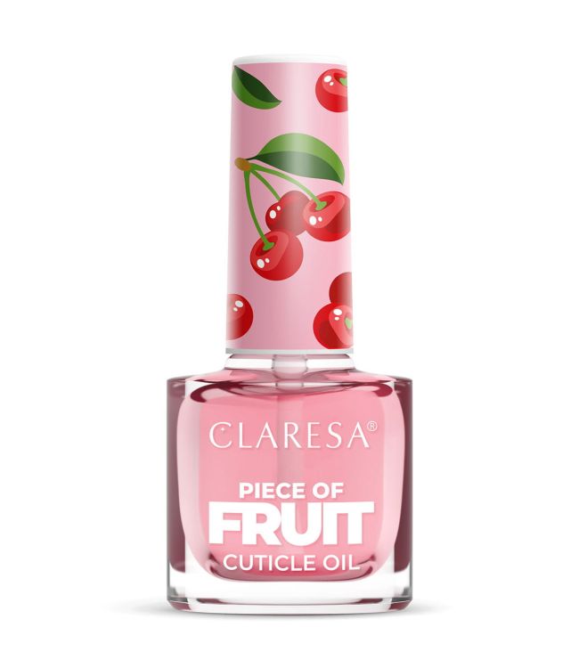 Claresa Cuticle Oil Cherry 5ml is een nagelriemolie met een sappige kersen geur uit de Piece of Fruit collectie van Claresa. De nagelriemolie helpt om de nagelriemen en de huid rondom de nagels te verzorgen, glad te maken en te voeden. Cherry heeft een intense en energieke kersengeur die langdurig blijft ruiken. Meer Lezen