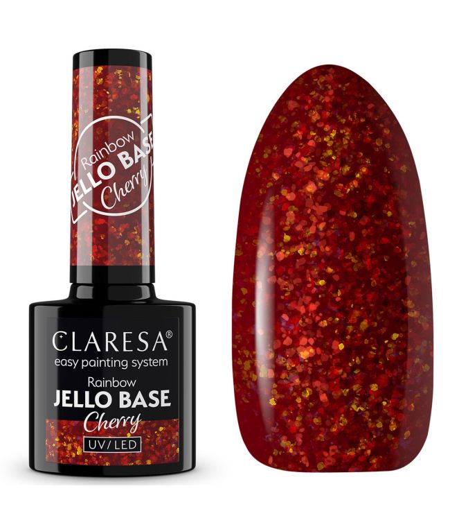 Claresa Rainbow Jello Base Coat Cherry 5ml is een donker kersenrode semi-transparante basecoat met glanzende stukjes folie. Met de Rainbow Jello Base collectie van Claresa kun je met één product de perfecte manicure creëren. De Jello collectie bestaat uit zonnige regenboogkleuren en warme herfsttinten die glanzen in verschillende kleuren door de irisirende foliestukjes in de gellak. De Jello Base Collectie is perfect als elegante manicure, voor festival nails of een ander feestje!