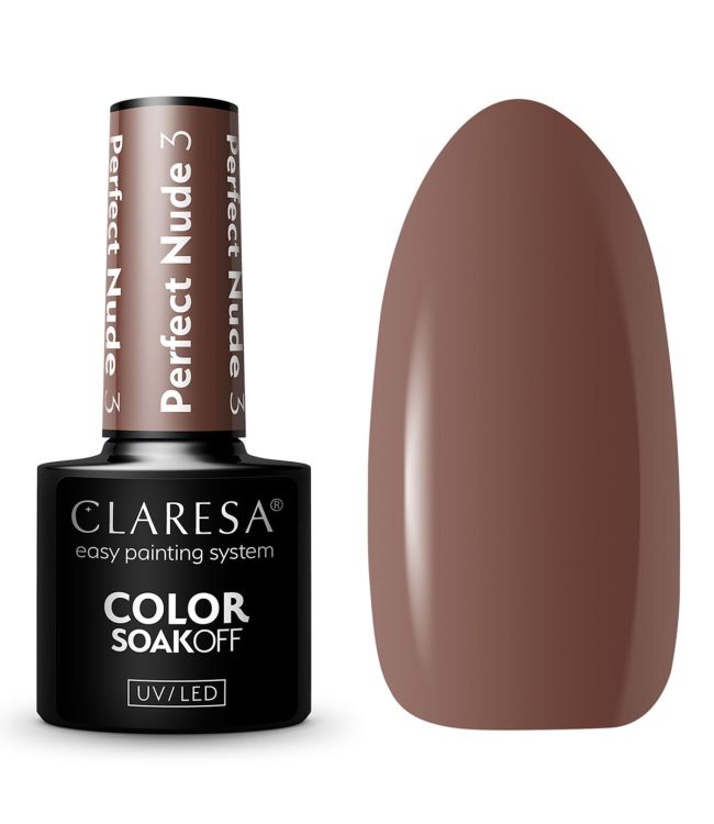 Claresa UV/LED Gellak 5ml Perfect Nude 3 is een gel nagellak in een diepe chocoladebruine tint met warme ondertoon uit de Perfect Nude collectie van Claresa. Nude is een tint die elk seizoen weer een comeback maakt op make-up gebied en daar horen de nagels natuurlijk bij! De Perfect Nude Collectie van Claresa speelt perfect in op deze tijdloze trend. Een nude tint is perfect voor een klassieke manicure, maar ook ideaal als basis voor nail-art. Perfect Nude 3 is een kleur geïnspireerd op warme melkchocolade. Deze elegante kleur bruin is dé perfecte kleur van het herfstseizoen en past bij elke gelegenheid.