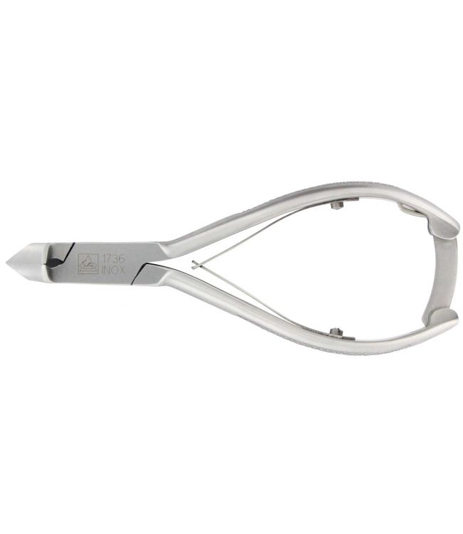 Erbe Solingen Pedicure Nageltang met Veer 14cm gebogen is een nageltang die speciaal gemaakt is om nagels gemakkelijk en zorgvuldig te knippen. Deze nageltang is ergonomisch en zeer praktisch in gebruik. De pedicure nageltang is gemaakt van speciaal heet-gesmeed roestvrij staal, getemperd en vernikkelde knipbladen met handgeslepen snijvlakken. Door de veer is er weinig kracht nodig om de nagels te knippen. Deze nageltang heeft een formaat van 14cm.