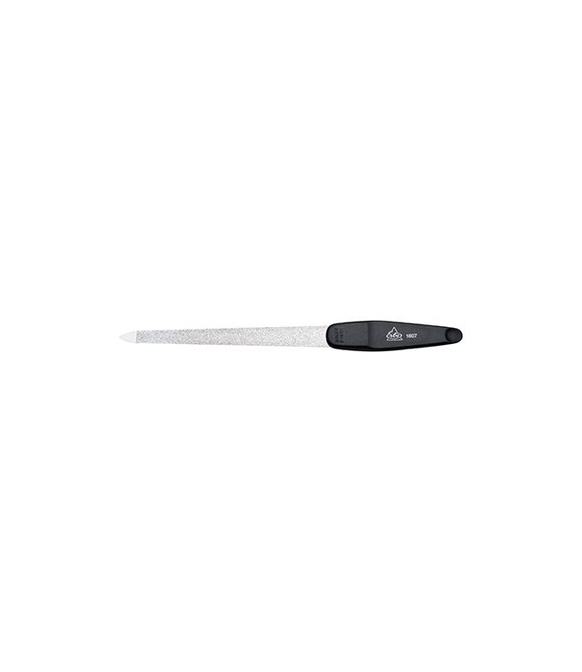Erbe Solingen Saffiervijl 18CM is een vijl die speciaal gemaakt is om vorm aan de nagels te geven. De ene zijde van de vijl heeft een grove structuur om de nagels vorm te geven. De andere zijde heeft een fijne structuur voor een gladde afwerking van de nagel. Het handvat van de vijl is voorzien van een bokkenpootje. Het puntje van de vijl kan worden gebruikt om onder de nagels schoon te maken. Deze vijl heeft een formaat van 18 cm en is zeer makkelijk in gebruik.