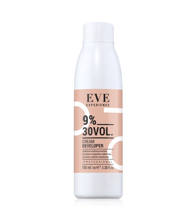 FarmaVita EVE Experience Cream Developer 9% 100ml is een romige waterstofperoxide op crème basis. De speciale formule is ontwikkeld om samen te gaan met kleuren zonder resorcinol of PPD, zoals EVE Experience zelf. De FarmaVita EVE Experience ontwikkelaar heeft een percentage van 9% of ook genoemd 30 VOL. en is specifiek gemaakt om optimaal te werken met FarmaVita Eve Experience haarverf en FarmaVita EVE Bleaching Powder. Deze oxydant crème is speciaal gemaakt voor professioneel gebruik. Ook verkrijgbaar in andere sterktes.