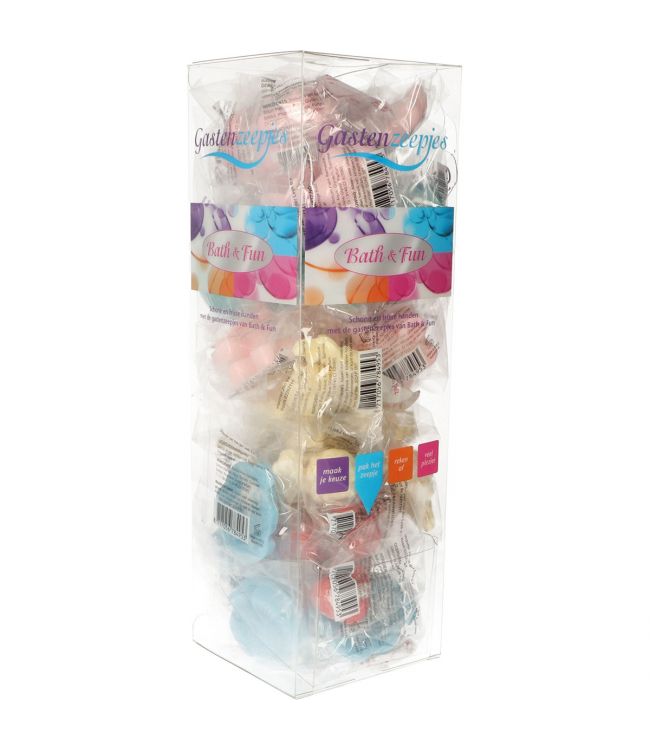 Gastenzeepjes In Koker Assorti 54 Stuks is een display met 54 stuks assorti zeepjes.