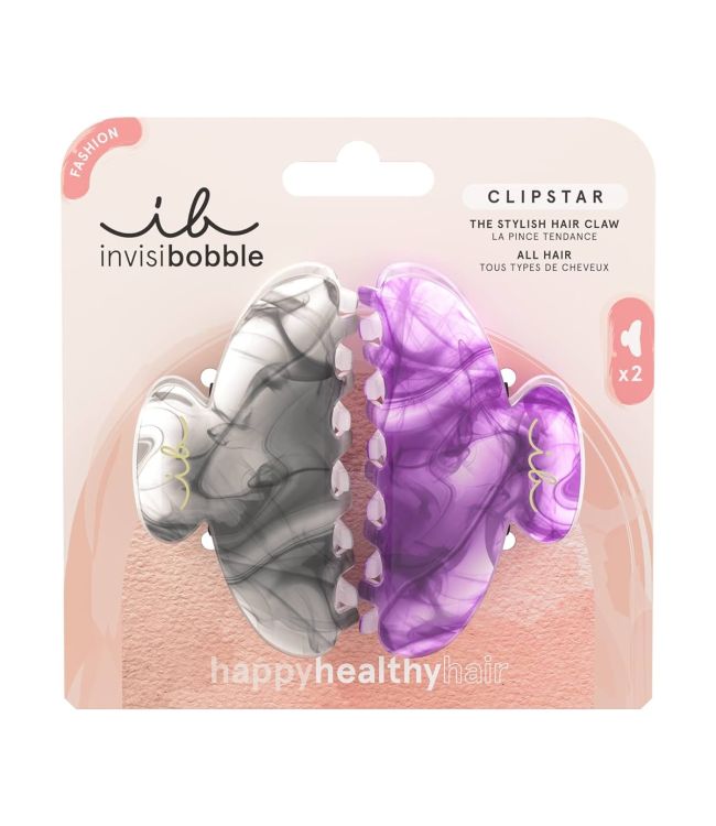 Invisibobble Clipstar My Rainboo 2st. is een set van 2 middelgrote haarklemmen van Invisibobble. My Rainboo zijn twee claw clips met een trendy, tijdloos design. De set bevat een donkergrijze en een paarse haarclip. Meer Lezen