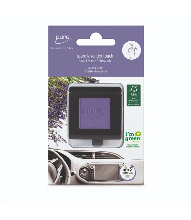 Ipuro Car Line Lavender Touch is een blokje wat kan worden opgehangen in de auto. Dit blokje geeft een heerlijke en frisse geur van lavendel en citrus af. De Ipuro Car Line geeft lang een heerlijke geur af en is makkelijk in gebruik. De nieuwe ipuro car lijn is 90% bio based en heeft een FSC gecertificeerde verpakking.