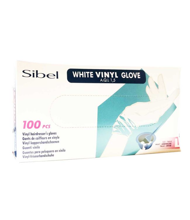 Sibel Vinyl Handschoenen Maat Large 100 stuks Wit is een doos van 100 stuks fijne vinyl handschoenen in de maat Large. Deze handschoenen zijn poedervrij en geschikt voor professioneel gebruik. De handschoenen bieden doeltreffende bescherming tegen vlekken en irritatie van de huid als gevolg van herhaald contact met kappersproducten. De handschoenen zijn meerdere keren bruikbaar en hebben een transparant witte kleur.