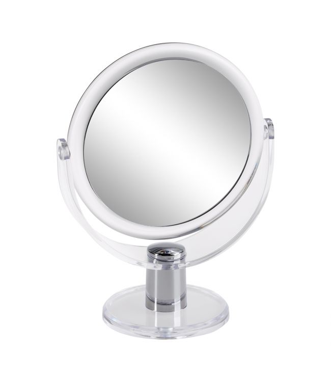 Spiegel op Voet 18cm 5x vergrotend is een spiegel met een voet die aan één zijde 5x vergroot en aan de andere zijde niet vergroot. Deze spiegel heeft een diameter van 11cm en een hoogte van 18cm. Deze spiegel is fijn in gebruik. De spiegel is gemaakt van kunststof en wordt geleverd in transparant.